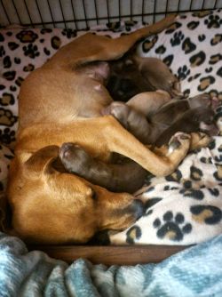 Es gibt eine Mama zu den Welpen und das ist die Zwergpinscherdame Sandy, die schon ein Zuhause gefunden hat.