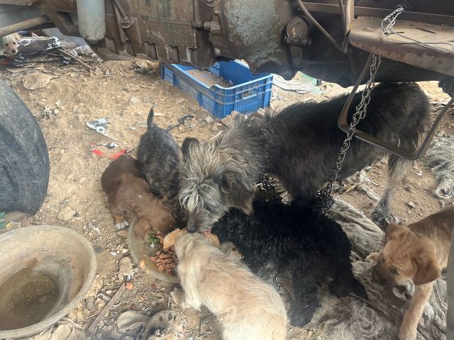 Rettung einer Hündin mit 7 Welpen von einem Altmetallsammler