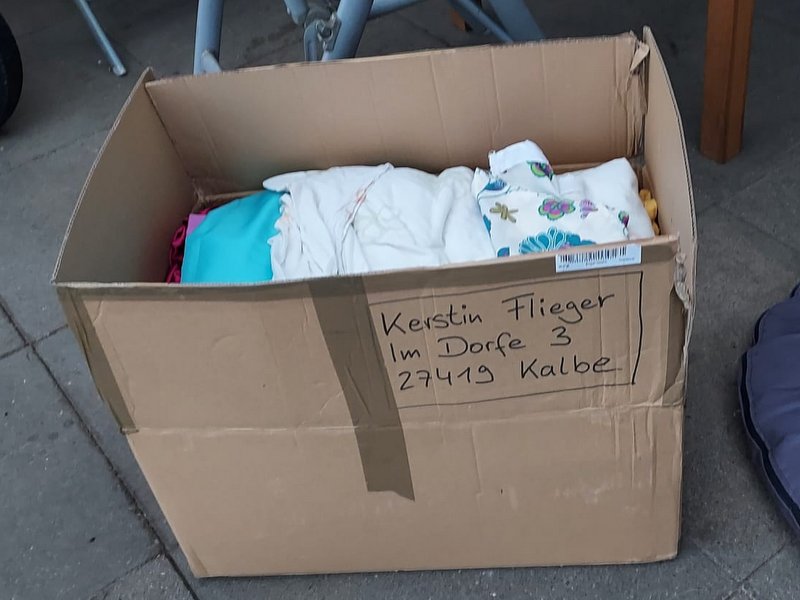 Eine liebe Nachbarin kam eine halbe Stunde später zu mir mit einem großen Karton, wo Bettwäsche und Wolldecken drin waren. Sie sagte, ich habe gerade meinen Hund die rote Wolldecke weggenommen und ihm gesagt: Es gibt auf der Welt noch andere Fellnasen die frieren und du hast es warm hier, also spenden wir deine Wolldecke.