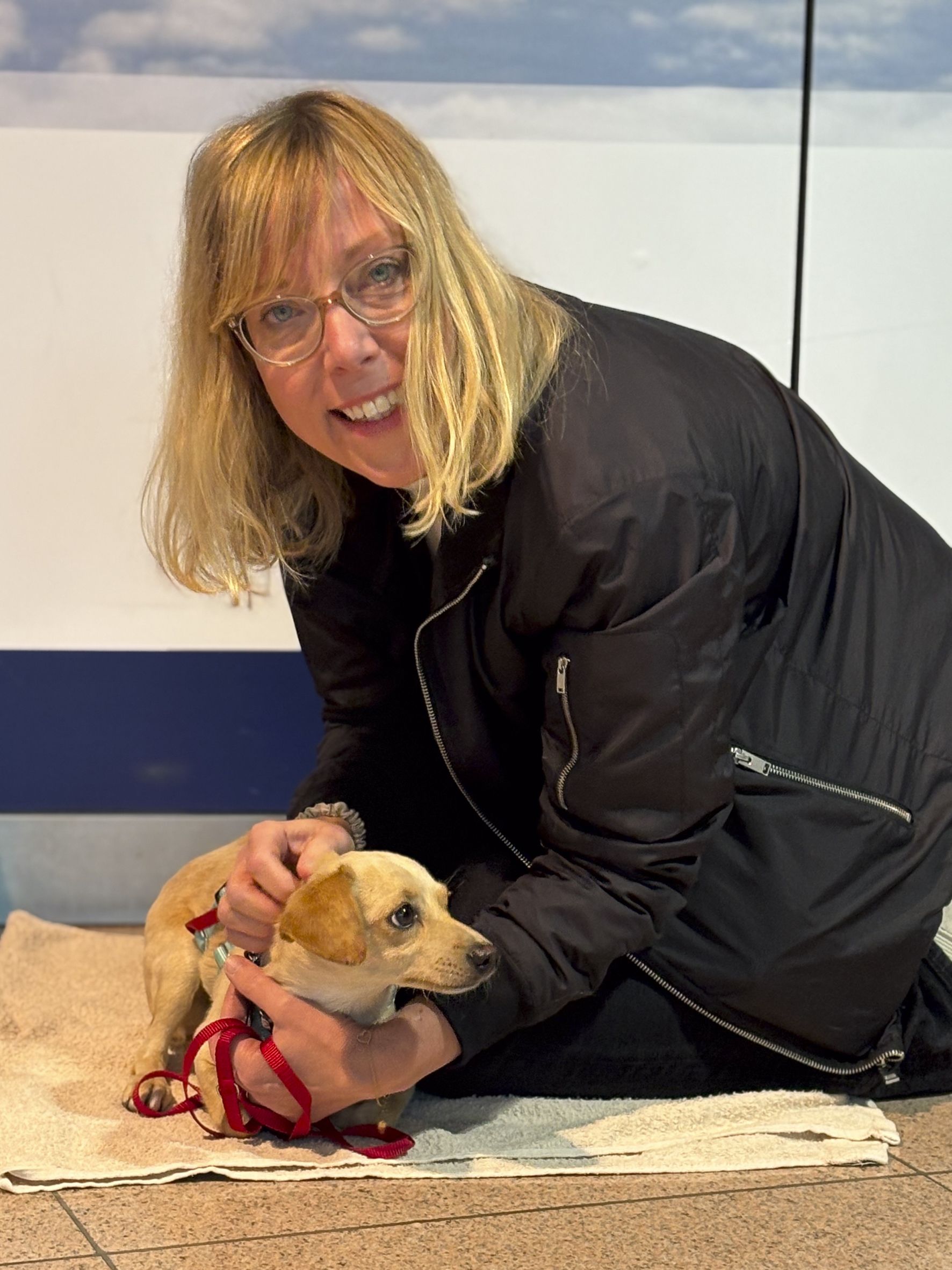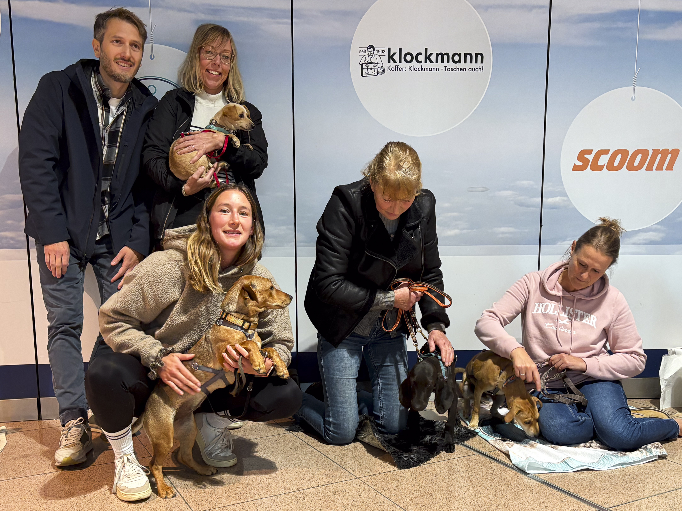 Am 19. Oktober hatten wir 2 Ankünfte mit 5 Hunden. Aldo, Joschi, Peter und Sugar sind mit Angelika Oetker-Kast nach Hamburg geflogen und Janti ist mit Roland Burgis in München angekommen - lieben Dank an die beiden Flugpaten. 😊 Unsere Iris war auch wieder vor Ort und hat bei der Übergabe der Hunde geholfen, lieben Dank auch dafür!