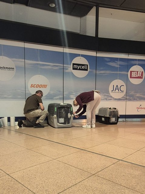 Das Ankunftsteam bestand aus Antje und Carsten; sie sorgten dafür, dass die Hunde sicher an ihre neuen Menschen übergeben wurden – auch dafür einen lieben Dank. 😊🐾
