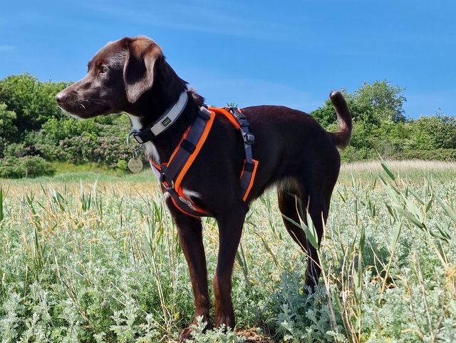 Wenn ich groß bin möchte ich Rettungshund werden. Dafür übe ich schon fleißig in der Flächensuche beim BRH.