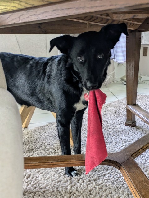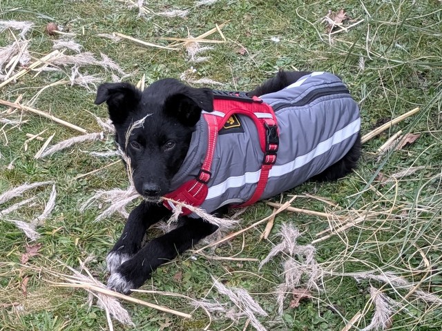 Ich muss zwar in die Schule, weil ich lernen soll, mich ordentlich zu verhalten. Den Garten nicht umgraben, keine Putzlappen klauen, nicht um Essen betteln und nicht aufs Sofa springen -aber das geht klar, mach ich natürlich alles nicht 🤭.