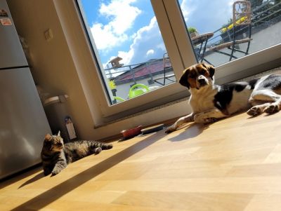 Aber vieles mache ich schon wie ein absoluter Profi. Ich liebe Spaziergänge, gehe sehr gerne mit Frauchen Joggen und sowohl als Begleitung im Reitstall als auch in Cafés und Restaurants mache ich mich schon vorbildlich. Es ist aber auch toll immer überall dabei sein zu können und ich staube gerne Lob und entzückte Blicke ab. Auch im Familienkreis habe ich schon alle mit meiner fröhlichen Art und meinem süßen Charme um den Finger gewickelt. Frauchen weiß allerdings, dass ich auch anders kann, denn Hundebegegnung an der Leine waren so gar nicht meins. Aber mit vielen Mühen unserer coolen Hundetrainerin werde ich auch da langsam souveräner und ich habe schon meinen ersten Social Walk absolviert. Auch der Kater ist langsam etwas überzeugter von mir, auch wenn ich es ab und zu ausversehen mal wieder übertreibe und vergesse, dass er nicht ganz so überschwänglich mit mir spielen möchte, wie ich mit ihm.