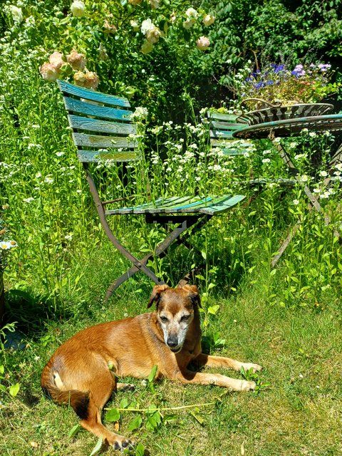 Wenn wir sie suchen, schreitet sie gerade wieder den Zaun ab oder liegt entspannt auf der Bank und wartet auf ihren "Einsatz😄".