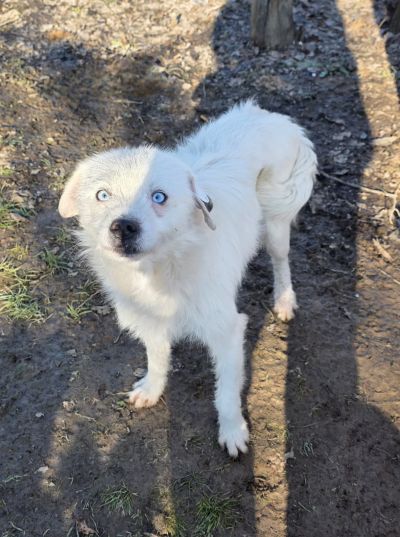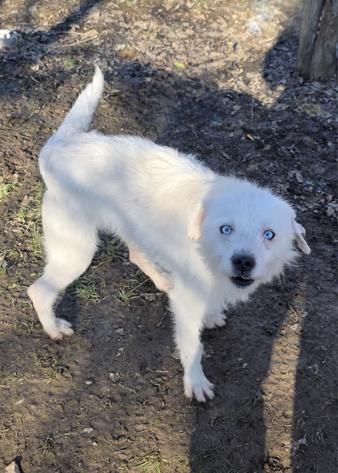 Belcho ist ein ganz besonderer Hund mit eisblauen Augen. Er ist überaus intelligent und folgt Viki überall hin; sie kann sich vor ihm nicht verstecken.