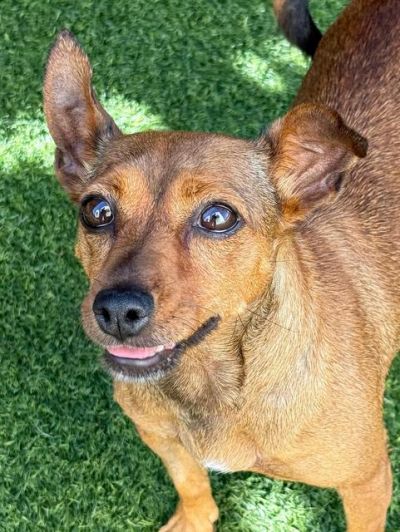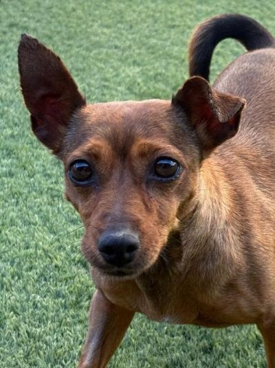 Binky ist ein Minipinscher. Sie hat eine Schulterhöhe von 22 cm und ein Gewicht von 4,5 kg:-))