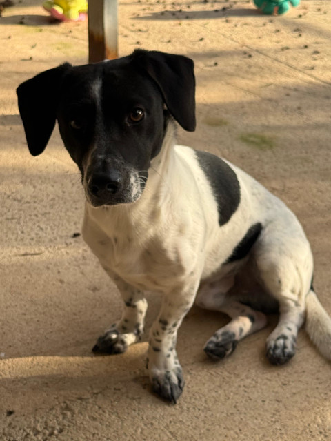 Buddy ist ein Mischling mit weißem und schwarzem Fell. Er ist ein sanfter, ruhiger und liebevoller Hund, der gerne mit Menschen und Kindern interagiert. Er ist darauf trainiert, an der Leine zu laufen, um draußen seine Geschäfte zu erledigen. Außerdem ist er daran gewöhnt, sich nach dem Spaziergang die Pfoten waschen zu lassen, bevor er wieder ins Haus kommt. Er ist sehr lieb, gut erzogen und gehorsam.