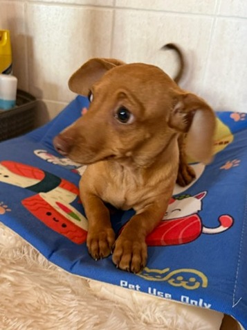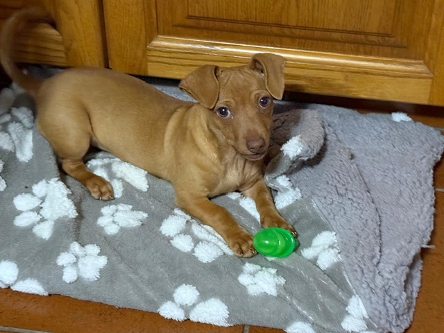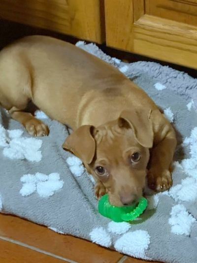 Coco ist eine süße Welpin, die sich jetzt freut, dass es Spielzeug und regelmäßig Futter für sie gibt .