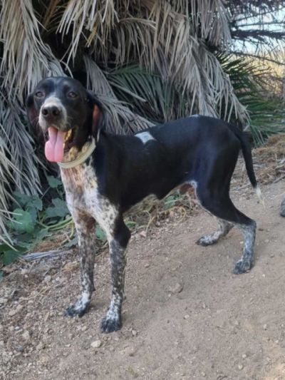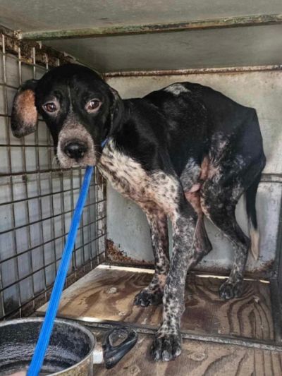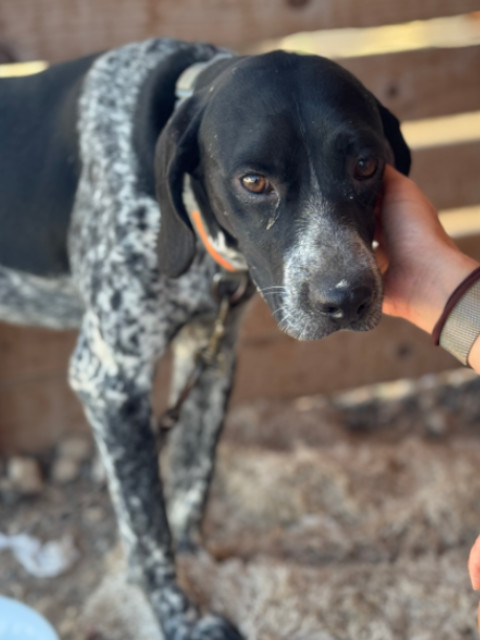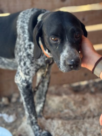 Duke - ein sehr hübscher Pointer-Mix und seine Schwester kamen in einem entsetzlichen Zustand im Paralimni Dog Pound an, buchstäblich Haut und Knochen.