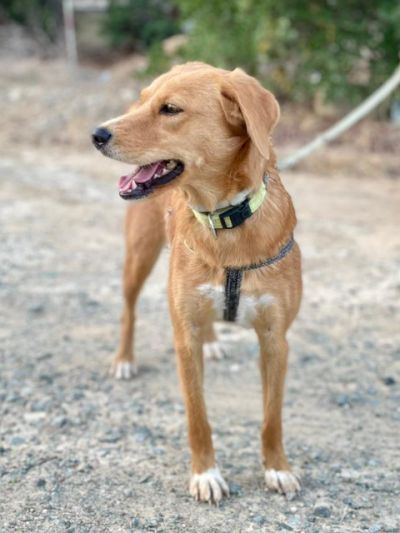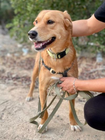 Die wunderschöne Hündin ist mittelgroß, hat goldbraunes Fell und ist ein wahrer Sonnenschein. Freya hat ein angenehmes gemäßigtes Temperament, ist anhänglich, sehr liebevoll und genießt die Aufmerksamkeit in vollen Zügen. Sie fasst sofort Vertrauen zu allen Menschen, die ihr begegnen. Freya ist sehr kontaktfreudig und verträglich mit Artgenossen. An der Leine läuft sie auch bereits sehr gut. Wir wünschen uns für sie einfühlsame Menschen, die ihr einerseits Sicherheit vermitteln und sie liebevoll an ihr neues Leben heranführen. Andererseits sollten ihre Menschen aktiv sein, denn sie möchte Abenteuer erleben. Eines ist sicher: Mit Freya zieht eine treue Hundefreundin bei Ihnen ein.