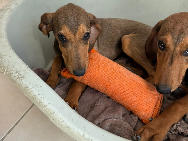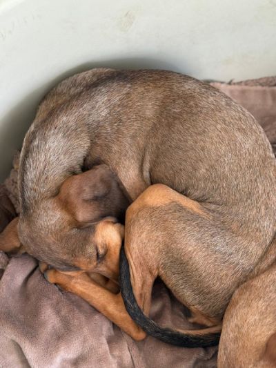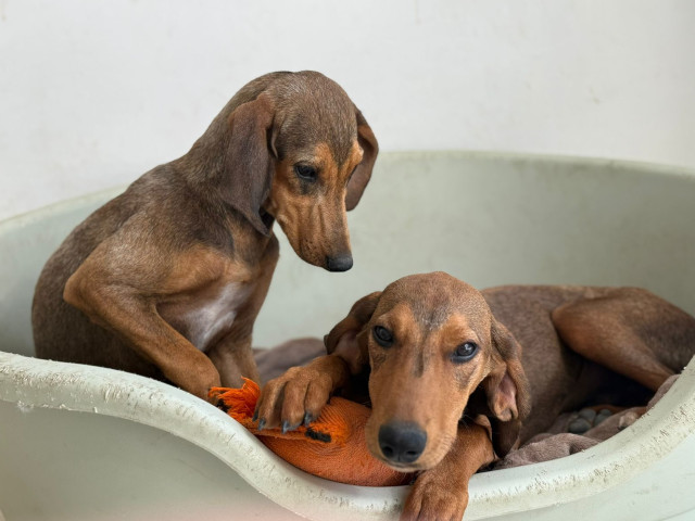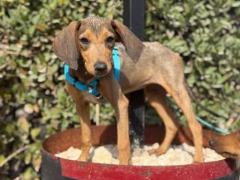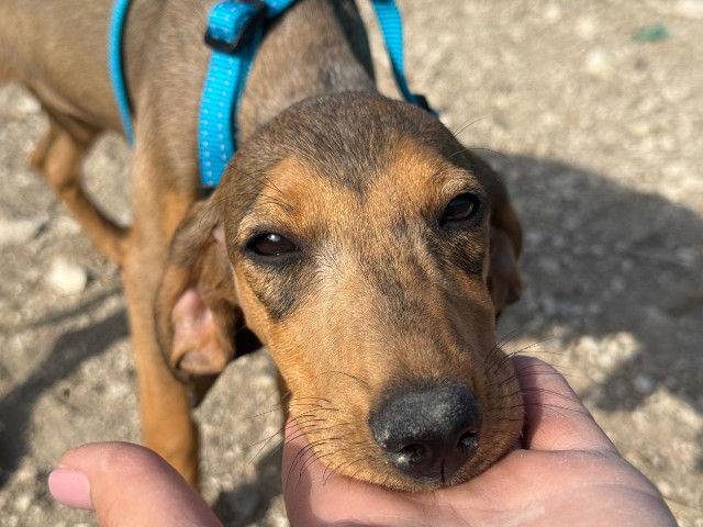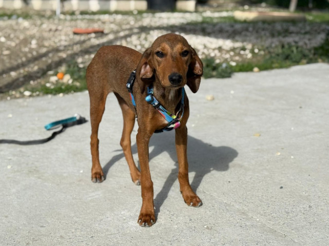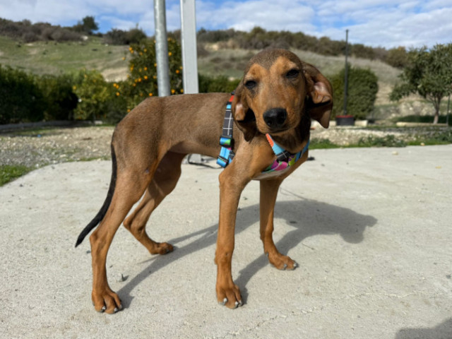 Die Geschichte von Freya beginnt leider, wie die vieler Hunde auf Zypern: Gemeinsam mit ihrer Mutter (s. Foto) und ihren Geschwistern wurde sie im Alter von nur etwa anderthalb Monaten auf der Straße gefunden. Die kleine Familie kam zunächst in ein Tierheim. Als die Temperaturen sanken, hatten sie Glück und durften in eine erfahrene Pflegestelle umziehen – besonders wichtig, da die Welpen kurzhaarig sind und schnell frieren.
