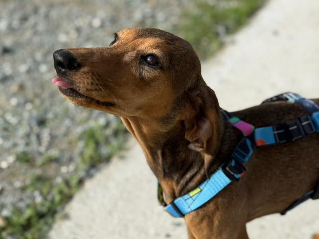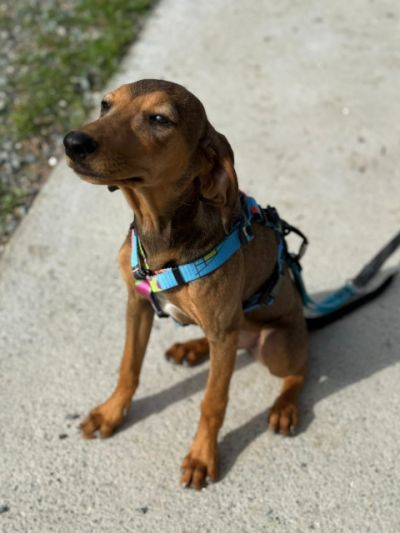 So offen und fröhlich Freya auch ist, trägt sie doch die sanfte Seele eines Bracke-Mixes in sich. Diese Hunde sind bekannt für ihre feine Wahrnehmung und Sensibilität. Sie binden sich eng an ihre Menschen, suchen Nähe und Orientierung und brauchen eine ruhige, klare Führung, um sich sicher und geborgen zu fühlen. Für eine Familie, die gerne draußen und aktiv unterwegs ist und sich eine enge Bindung zu ihrem Hund wünscht, ist Freya genau die Richtige. Ein souveräner Ersthund wäre sicher eine gute Orientierungshilfe, ist aber kein Muss.