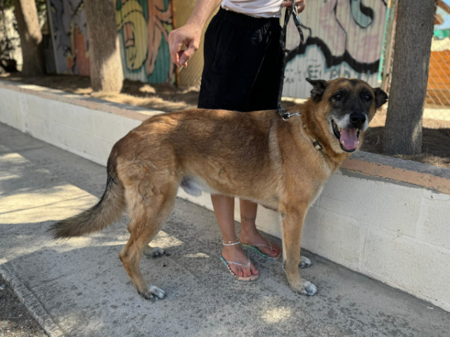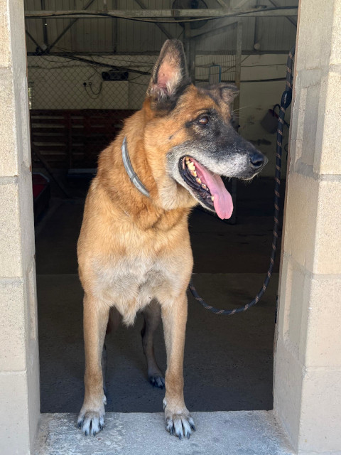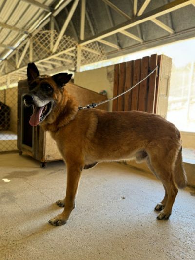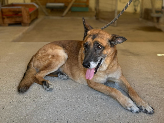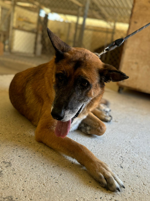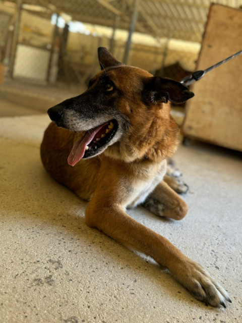 Henry - ein etwas älterer Schäferhund-Mix - war einer von 4 Hunden, die über den Zaun ins Tierheim geworfen wurden. Einer dieser Hunde war Jet, der bereits sein Zuhause in Deutschland gefunden hat. Er war in einem sehr schlechten Zustand, voller Flöhe, mit entzündeter Haut und Haarausfall auf dem Rücken. Er hatte Ohren- und Augeninfektion, die wir behandelt haben und ist jetzt bei guter Gesundheit. Wir kennen seine Herkunft nicht, außer dass alle 4 Hunde aus demselben Haushalt stammen.