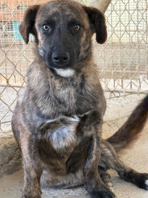 Honey ist eine Mischlingshündin mit mittellangem Fell und gestromter Farbe. Sie ist sehr anhänglich und freut sich, wenn die freiwilligen Helfer des Tierheims sie streicheln. Sie ist sehr freundlich zu allen Menschen, ruhig, macht keine Unordnung in ihrem Zwinger und ist kein lauter Hund.