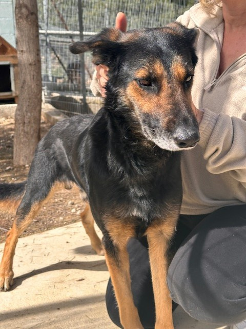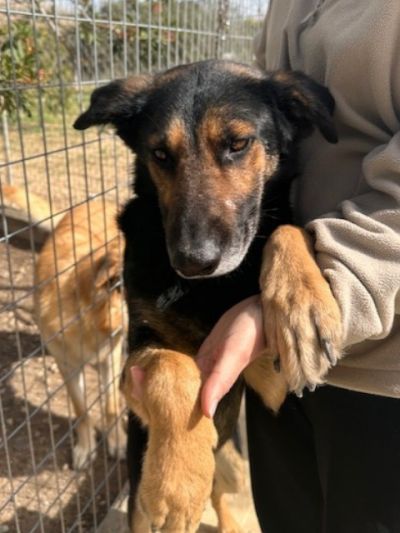 Dieser hübsche junge Rüde ist ein ruhiger, sanftmütiger Zeitgenosse, der ein geduldiges, verständnisvolles Zuhause für immer sucht, damit er sich entfalten kann. Jet hat ein auffälliges schwarzes und braunes Fell mit schönen Sprenklern wie Pfeffermuster auf seinem ganzen Körper, was ihm ein robustes und doch auffälliges Aussehen verleiht. Seine großen, ausdrucksstarken Ohren stehen aufrecht und wachsam, sie umrahmen sein Gesicht mit den warmen braunen Augen, die eine nachdenkliche und beobachtende Seele verraten. Von Natur aus ist er anfangs etwas zurückhaltend gegenüber fremden Menschen; es kann eine Weile dauern, bis er sich eingewöhnt hat und er beobachtet erst still, bevor er sich nähert. Sobald er jedoch jemandem vertraut, ist er zuneigungsvoll und geniesst es, sich sanft den Kopf streicheln zu lassen und eine ruhige Gesellschaft zu haben. Für sein Alter ist er insgesamt sehr ruhig, nicht hyperaktiv oder umherspringend.