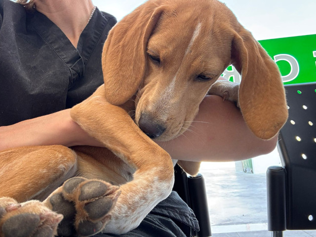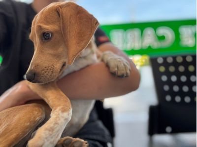 Die kleine Marisha hat in ihrem jungen Leben schon einiges erlebt. Sie wurde auf einem abgelegenen Bauernhof gefunden, wo sie einfach zurückgelassen wurde. Erst als es Freiwilligen des Tierheims gelang, sie einzufangen und in Sicherheit zu bringen, durfte Marisha zum ersten Mal erfahren, dass Menschen nicht nur Angst machen, sondern auch helfen können. Als sie zu Julia ins Shelter kam, war sie ein schüchternes, verunsichertes Welpenmädchen – Schritt für Schritt lernt sie nun, dass die Welt auch freundlich sein kann.