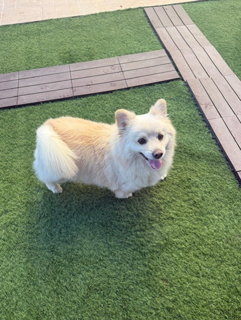 Marsh sieht aus wie ein Korgi- Pomerianian Spitz der trotz seiner schlimmen Vergangenheit liebe Menschen ganz toll findet.