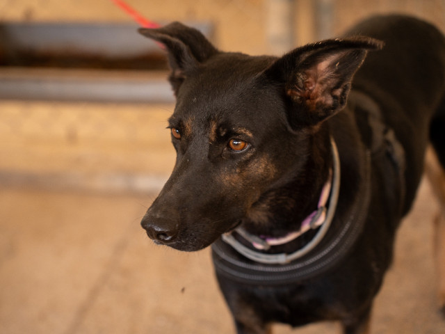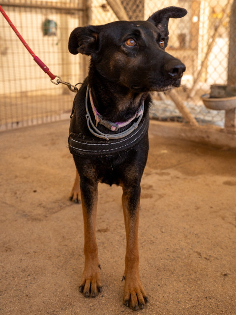 Lady wurde am 12.7.24 zusammen mit drei anderen Hunden über den Sicherheitszaun des Argos-Tierheims geworfen. Wir wissen nichts über ihren Hintergrund, außer dass sie in guter körperlicher Verfassung war und auch kastriert wurde.