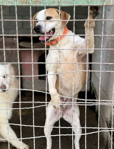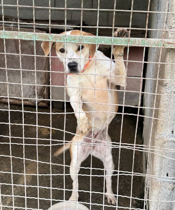 Unsere Tierschützerin Viki fand die schmale Mila im Sommer 2021 in er Tötungsstation in Nordmazedonien. Ein schlimmer Ort wo Hunde abgegeben oder von den Hundefängern ,aufgegabelt auf der Straße, hingebracht werden. Die Hunde haben eine Schonfrist von 2 Wochen, damit der eventuelle Besitzer die Zeit hat den Hund wieder zu holen. Danach werden die Hunde getötet. Mila saß dort, nur noch Haut und Knochen und sollte in den kommenden Tagen eingeschläfert werden.