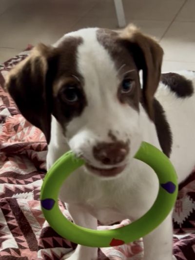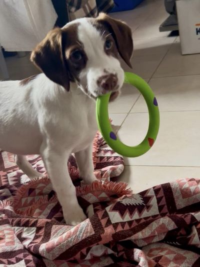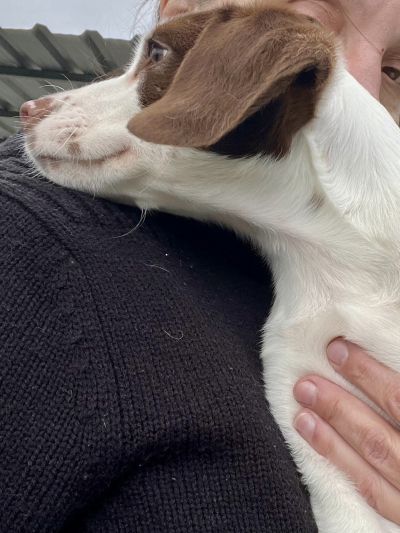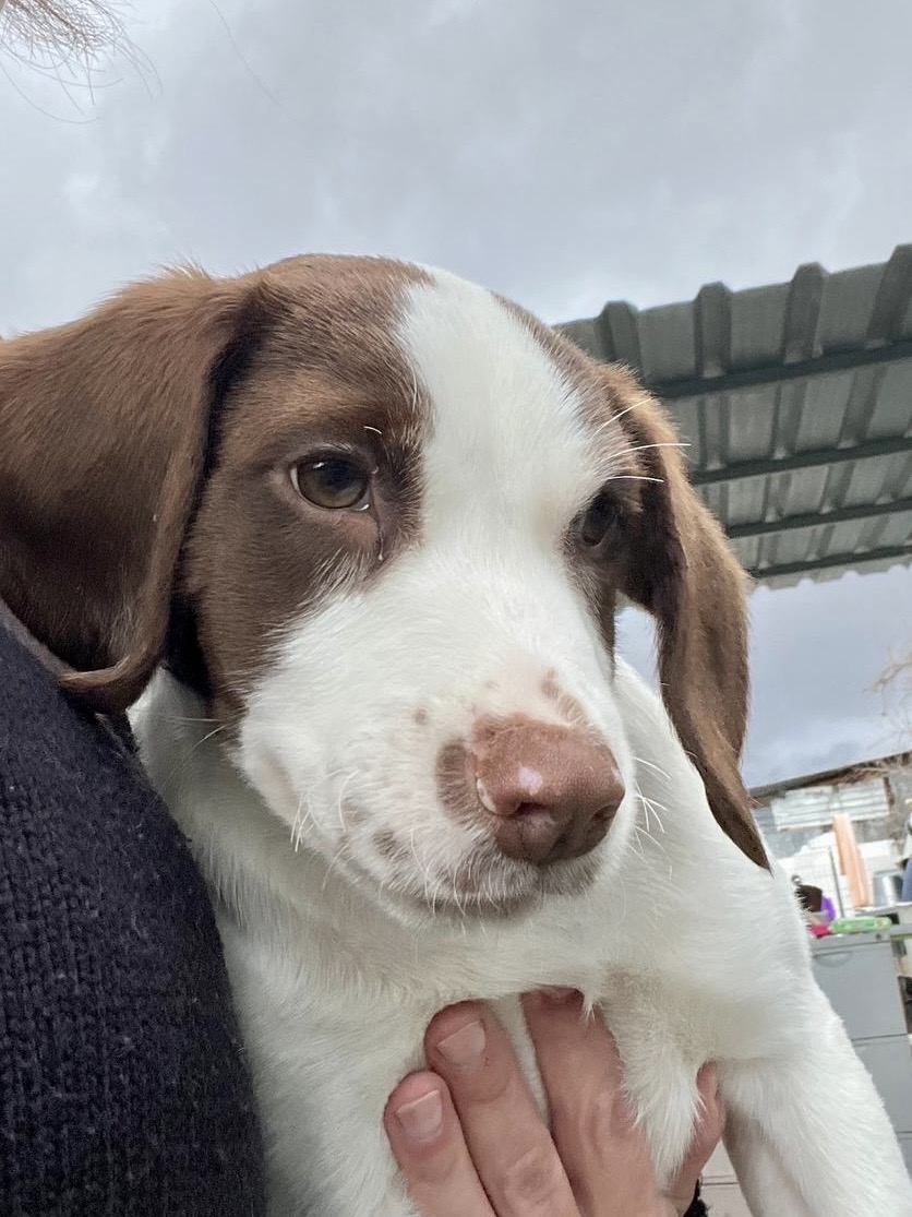 Rocco ist ein junger Mischlingsrüde, geboren im Oktober 2025. Mit seinem weißen Fell und den braunen Abzeichen ist er ein echter Hingucker – lebendig, charmant und voller Persönlichkeit. Er wurde gemeinsam mit seinen beiden Schwestern im Dezember gefunden und lebt nun im Roberts Shelter, wo er sich bestens eingelebt hat.