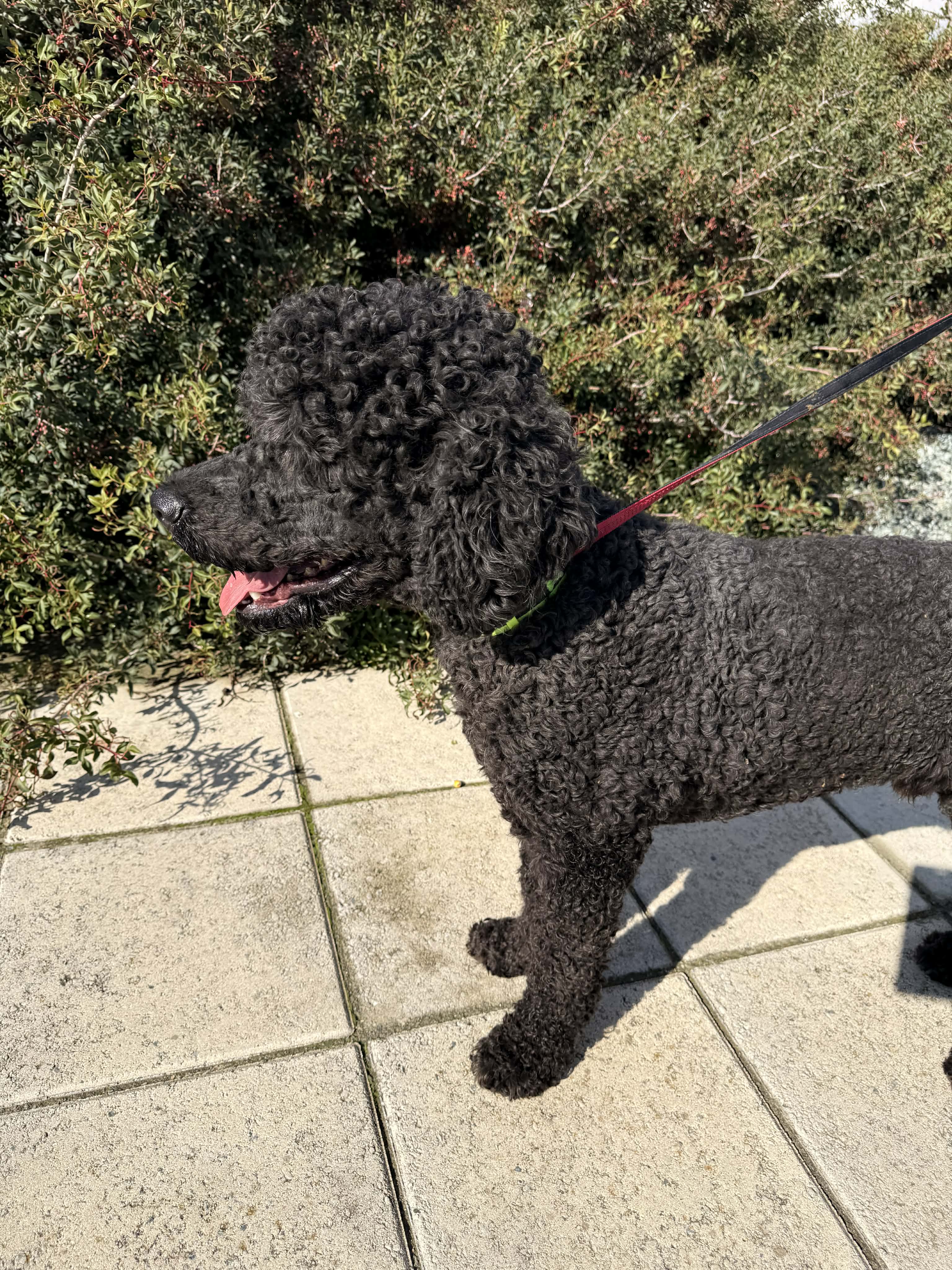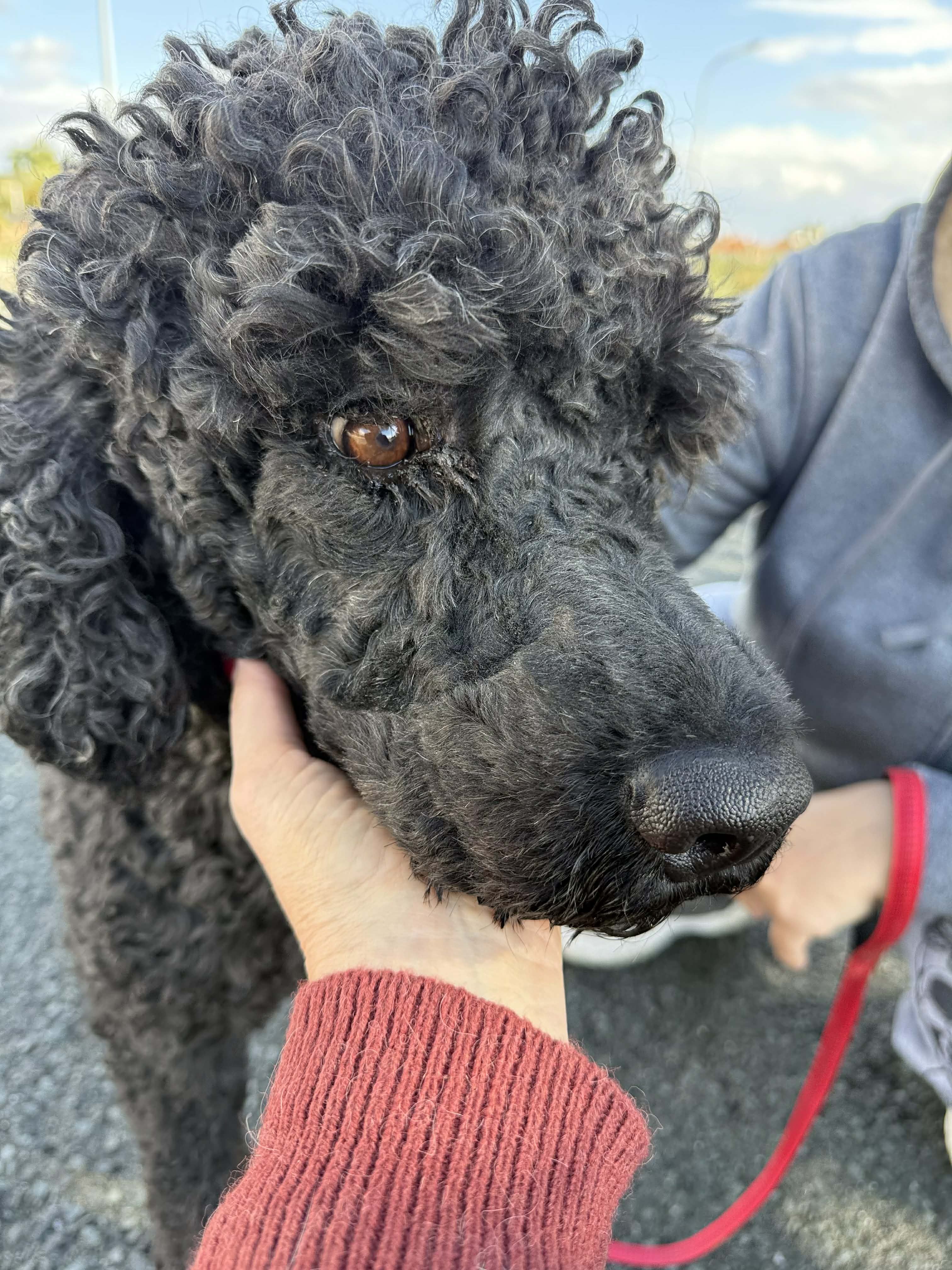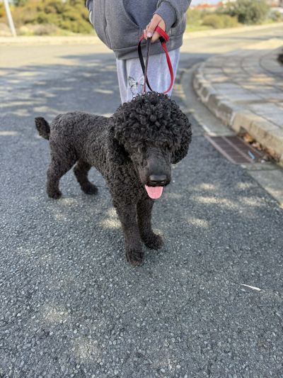 Rony ist ein stattlicher Rüde - es wird geschätzt, dass er ein portugiesischer Wasserhund ist. Von seinem Aussehen her könnte er jedoch auch ein Großpudel sein. Er ist im Mai 2022 geboren, hat tiefschwarzes, dichtes Lockenfell und ist mit seinen 30kg und 60 cm Schulterhöhe ein stattlicher Kerl.