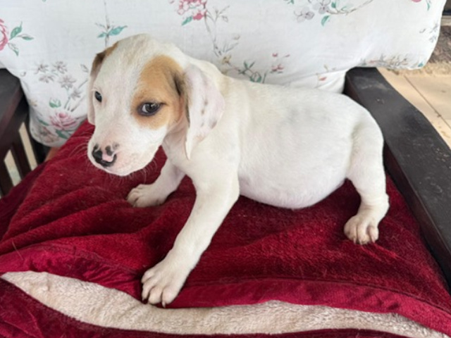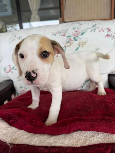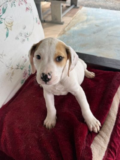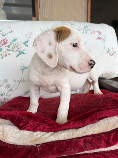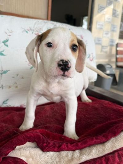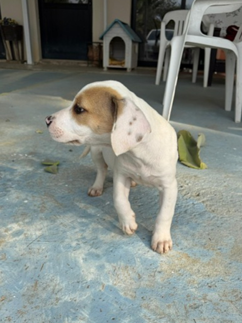Rose ist eine weiß-braune, kurzhaarige Hündin mit wunderschönen, neugierigen Augen – eine von denen, die einem sofort ein Lächeln ins Gesicht zaubern. Im Vergleich zu ihren Schwestern zeigt sie sich etwas ruhiger, dabei aber ebenso menschenbezogen und liebevoll. Sie genießt Aufmerksamkeit sehr, lässt sich gerne streicheln und sucht die Nähe zu ihren Bezugspersonen. Rose ist eine sanfte kleine Seele mit einem ausgeglichenen Wesen. In ihr steckt viel Potenzial, das mit Geduld, liebevoller Führung und positiver Förderung wachsen darf. Für Rose wünschen wir uns ein Zuhause bei einfühlsamen Menschen, die ihr Sicherheit geben und sie Schritt für Schritt in ein erfülltes Hundeleben begleiten.