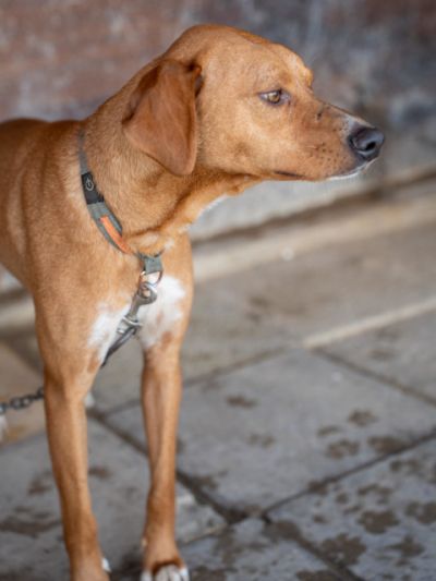 Rusty genießt Spaziergänge sehr – nach einer kurzen Phase der Aufregung läuft er wunderbar an der Leine und erkundet neugierig seine Umgebung. Im Alltag zeigt er sich ruhig und angenehm: Nach den täglichen Routinen zieht er sich gerne auf seinen Platz zurück und ruht sich zufrieden aus.