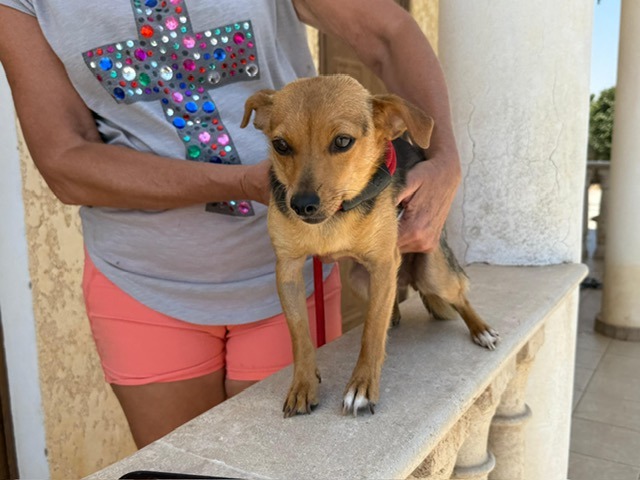 Unsere Kollegin auf Zypern hat eine zeitlang versucht Verrtrauen zu der kleinen Hündin aufzubauen, um sie dann zu sichern und in ihre Hundepension zu bringen.