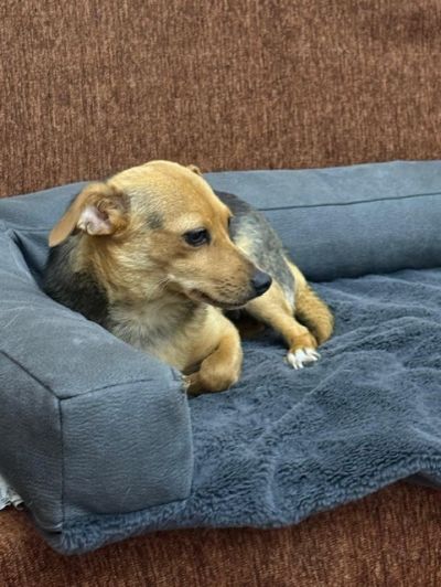 Sissy ist eine ruhige anspruchslose Hündin. Sie liegt gerne auf einem Sofa in der Hundepension und schaut sich alles in Ruhe an.