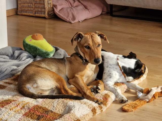 Sugar lernt schnell und möchte alles richtig machen. Sie versteht rasch, was man von ihr möchte, wenn man klar und ruhig mit ihr kommuniziert. Sie bringt viel Energie mit, hat aber auch eine sensible Seite und braucht Menschen, die ihr Halt und Orientierung geben. Ein wenig Jagdtrieb ist erkennbar – hier sollte weiter liebevoll, aber konsequent gearbeitet werden.