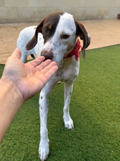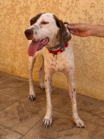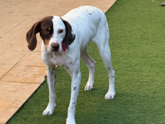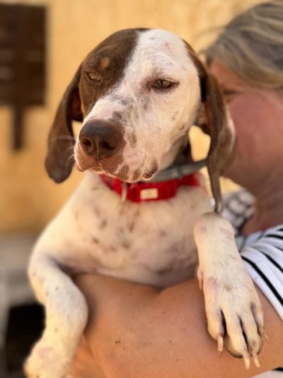 Ticky ist ein wunderschöner Pointer-Mischling mit einem ausgeglichenen Wesen. Sie ist klug, aufmerksam und merkt schnell, wem sie vertrauen kann. Fremden gegenüber ist sie zunächst etwas zurückhaltend, doch sobald sie merkt, dass man es gut mit ihr meint, taut sie auf und zeigt ihr liebevolles, anhängliches Wesen. In vertrauter Umgebung ist Ticky ein ruhiger, angenehmer Hund, der sich wunderbar anpasst und keine großen Ansprüche stellt. Sie liebt es, in der Nähe ihrer Menschen zu sein, ohne sich aufzudrängen.