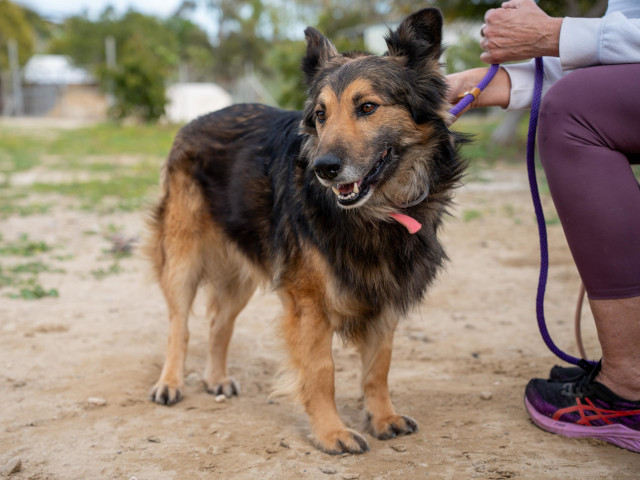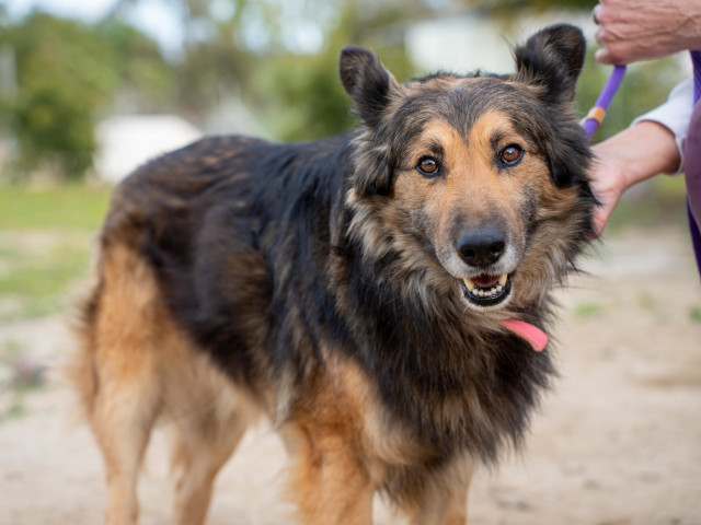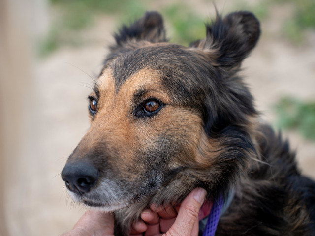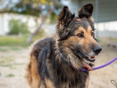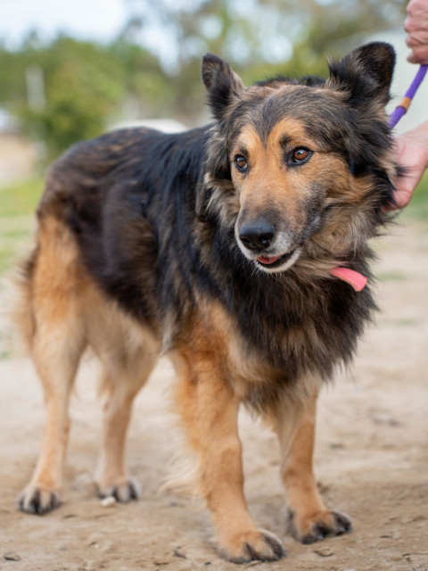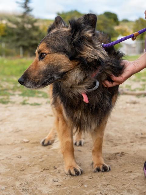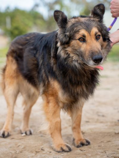 Tiggy ist ein süßer Rüde und hat eine sanfte schüchterne Persönlichkeit und ist nicht sehr aktiv, was ihn ideal für ein ruhiges, liebevolles Zuhause macht, wo er sich entspannen und viel Zuneigung erhalten kann. Körperlich ist er ein Aufsehen erregender mittelgroßer bis großer Hund mit einem fluffigen schwarz-braunen Fell, ausdrucksstarken Augen und einem athletischen Körperbau. Er würde sich in einem Zuhause wohlfühlen, in dem er in seinem eigenen Tempo Selbstvertrauen aufbauen kann. Er ist wirklich ein liebevoller, freundlicher junger Rüde.