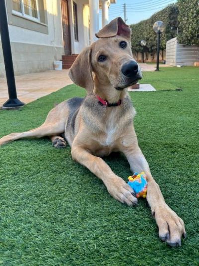 Toby - wurde weinend von einer Dame an der Kirche gefunden, die Sotiroulla um Hilfe bat, dieses Kerlchen zu retten. Er war ein winziger Welpe, als er gefunden wurde und konnte nicht auf den Hinterbeinen stehen/laufen. Am selben Tag (23.3.2024) wurde er zum Tierarzt gebracht. Er wurde stabilisiert und auf Infektionskrankheiten getestet, die Tests fielen negativ aus. Zwei Tage später wurden Röntgenaufnahmen gemacht, die eine Fraktur des linken Hinterbeins zeigten. Am linken Schienbein wurde ein orthopädischer Eingriff vorgenommen und eine Platte eingesetzt. Obwohl am rechten Hinterlauf keine Fraktur erkennbar war, konnte er ihn nicht bewegen. Dies war möglicherweise auf eine Nervenschädigung zurückzuführen. Toby wurde die nächsten 6 Wochen bis zur Heilung des Bruchs in der Tierklinik behandelt. Während dieser Zeit wurde er an der Leine geführt, um ihn zu ermutigen, auf das rechte Bein zu treten. Mit Hilfe von Vitaminen und Medikamenten begann er langsam auch auf dem rechten Bein zu laufen. Er wurde auch mit Laser behandelt. Jetzt läuft Toby auf beiden Hinterläufen!
