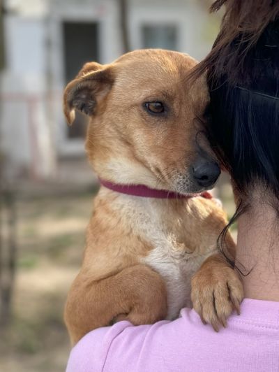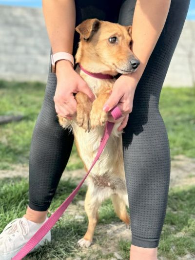 Jetzt lebt sie mit vielen anderen Hunden im Shelter. Sie ist freundlich und offen, doch auch ruhig und ein wenig schüchtern.