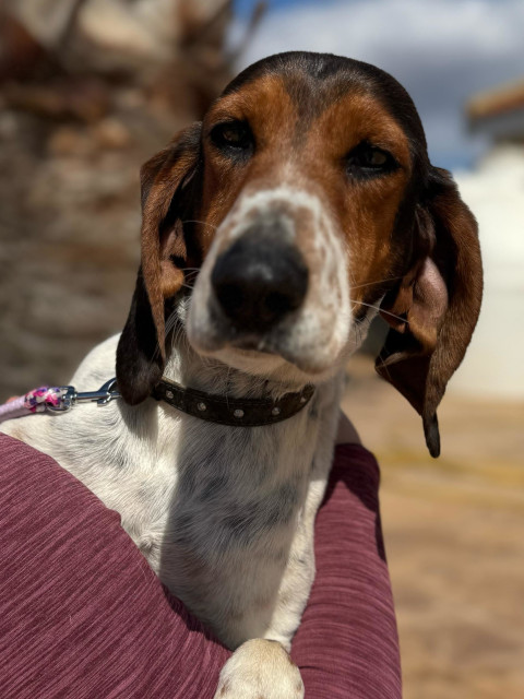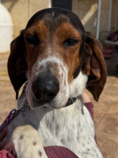 Apollo - so ein hübsches Kerlchen, wurde an einer üblichen Stelle in der Nähe des Strandes gefunden, dort wo Hunde regelmäßig von Jägern entsorgt werden, die ihre Hunde nicht mehr haben wollen. Er war abgemagert und ängstlich und hatte eine riesige Kuhglocke um den Hals. Ein Hund der ein feines Gehör hat, empfindet das mit Sicherheit als große Grausamkeit! Wozu Menschen in der Lage sind, das erfährt man, wenn man sich im Tierschutz engagiert!