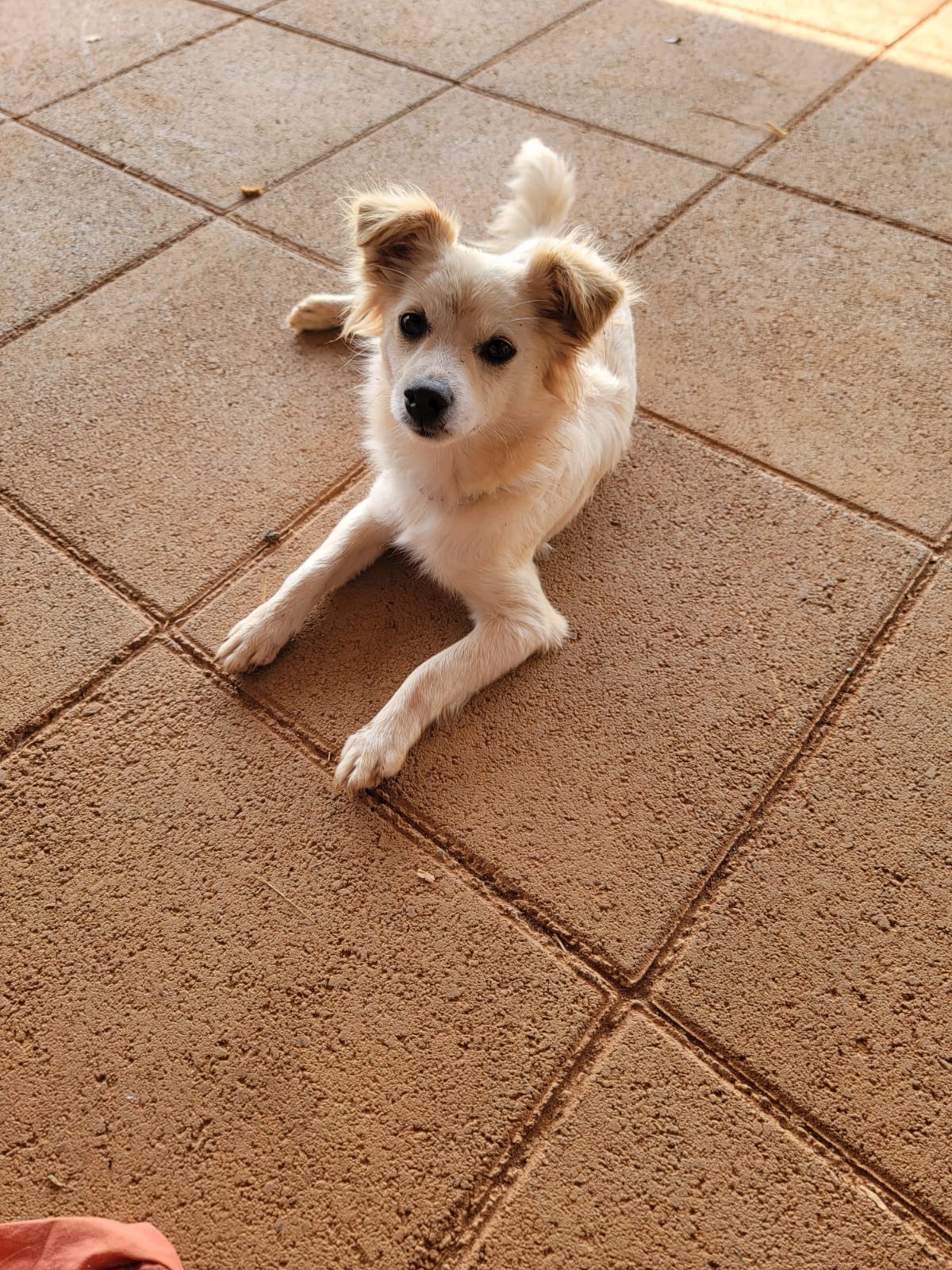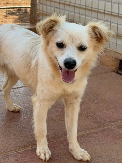 Aria ist eine junge Kokoni-Mix-Hündin, die im August aus dem städtischen Tierheim gerettet wurde. Seitdem lebt sie bei Rita, wo sie sich langsam an ein sicheres Leben gewöhnt. Sie ist etwa 9 Monate alt und 32 cm hoch, hat langes, weiß glänzendes, weiches Fell und ein freundliches, aber zurückhaltendes Wesen.