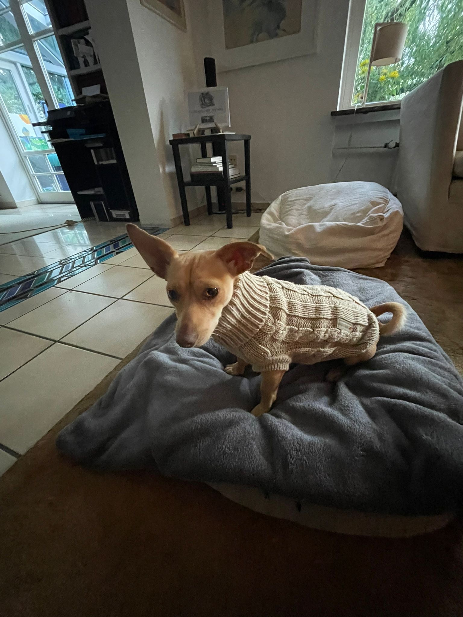 Geboren im August 2024 und etwa 32 cm hoch, ist Bibi eine Chihuahua-Mix-Dame mit einem freundlichen, menschenbezogenen Wesen. Sie versteht sich gut mit anderen Hunden, Katzen und Kinder wurden bisher nicht getestet. Aufgrund ihrer sensiblen Art sollten Kinder im Haushalt bereits älter und verständnisvoll sein.