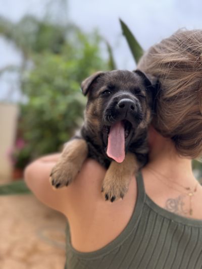 Croft ist ein kleiner Welpe mit weichem Fell, der mit allen anderen Hunden spielt. Im Moment ist er ein wenig futterneidisch, aber daran wird gearbeitet, denn wahrscheinlich musste er vorher um sein Futter kämpfen. Er liebt es zu kuscheln, aber er möchte auch immer gerne auf irgend etwas herumkauen, das tun ja viele Welpen mit ihren Milchzähnchen. Wenn er müde ist, legt er sich gerne alleine zum Schlafen hin.