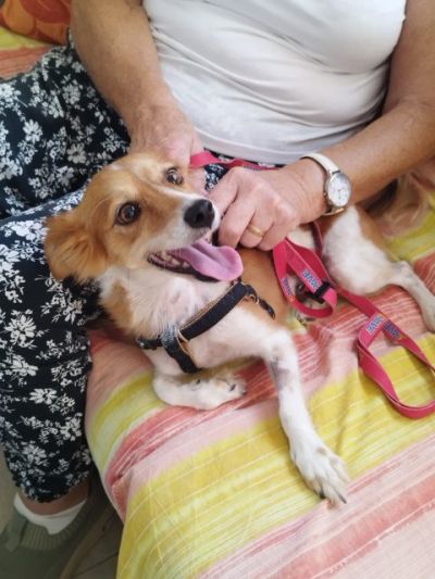 Daisy wurde auf einer Straße von Peter einem Tierheimmitarbeiter entdeckt. Sie lief hilflos von einer Seite zur anderen, kam aber als man sie zu sich lockte.