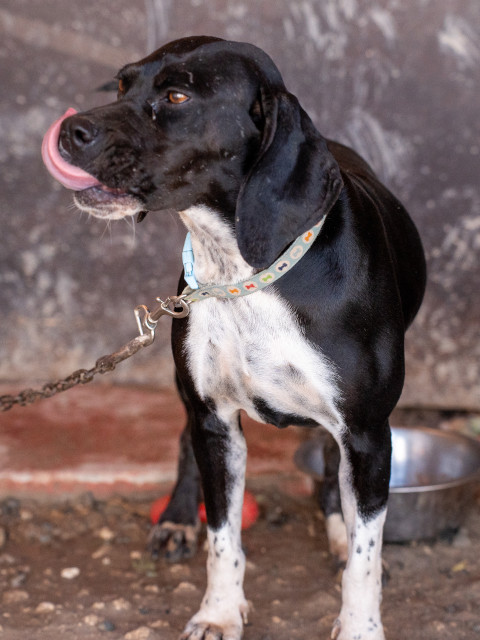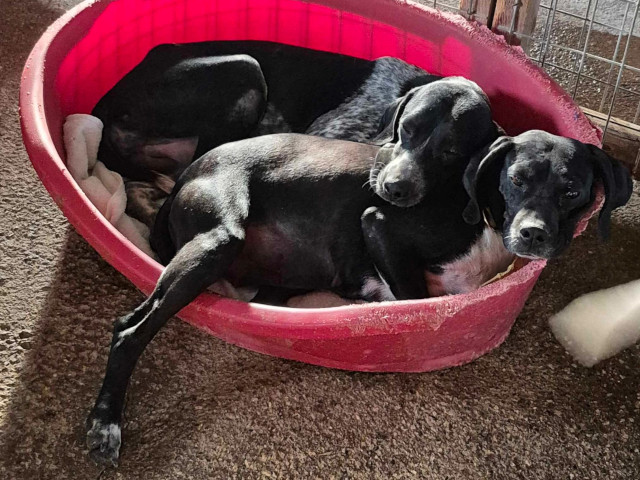 Beide Hunde sind sehr menschenfreundlich, lieben all die Aufmerksamkeit, die sie von den freiwilligen Helfern bekommen können, gehen gerne spazieren und verstehen sich auch gut mit allen anderen Hunden und teilen sich derzeit einen Käfig mit Marlon, einem anderen sehr freundlichen Pointer-Mix und einer anderen großen Hündin. Sie verstehen sich alle gut. Es ist so herzerwärmend zu sehen, wie die beiden bei ihrer Ankunft aussahen und wie sie jetzt aussehen. Daisy ist die kleinere der beiden, aber sie gibt genauso viel Liebe wie ihr Bruder.