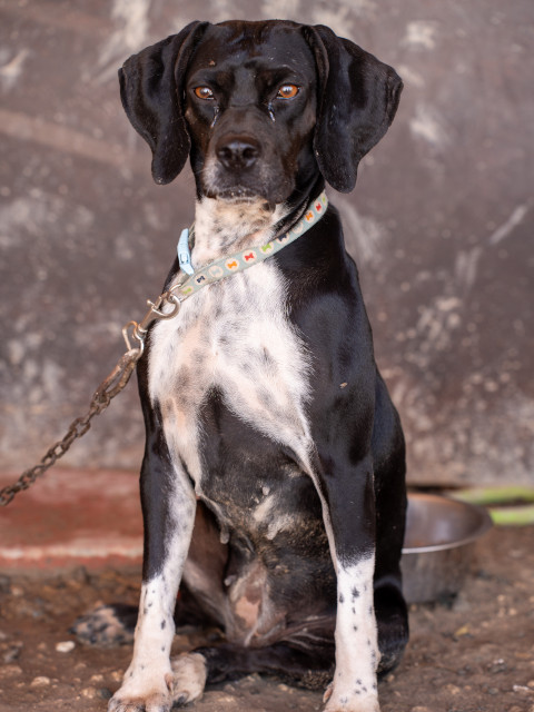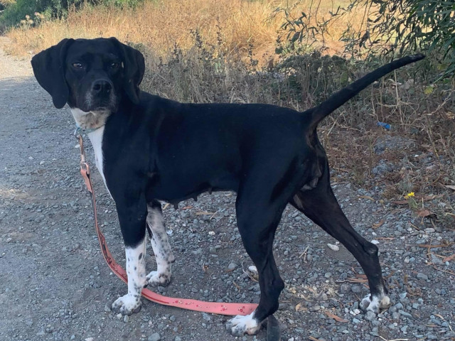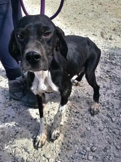 Daisy - eine sehr hübsche Pointer-Mix-Hündin und ihr Bruder kamen in einem entsetzlichen Zustand im Paralimni Dog Pound an, buchstäblich Haut und Knochen.