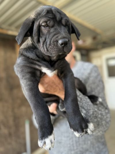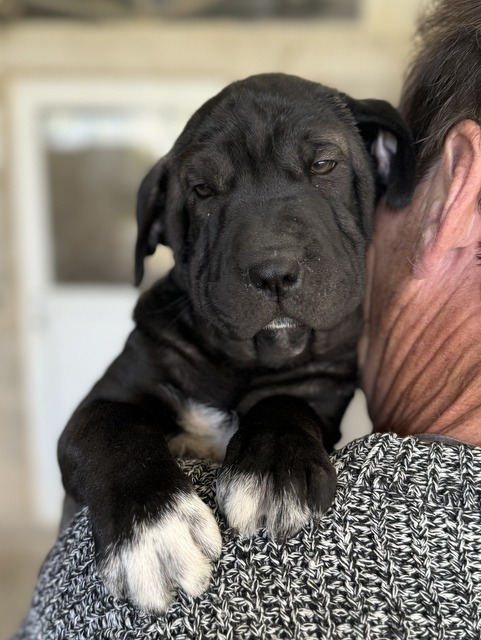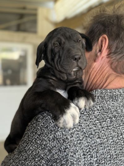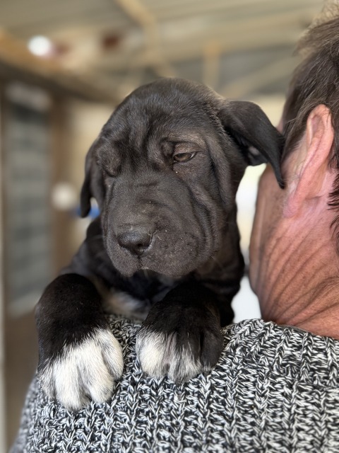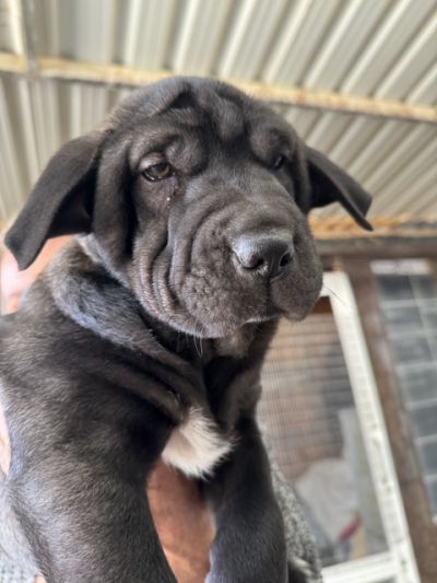 Emba ist ein großer Welpe, die sehr verspielt ist und sowohl die Gesellschaft von Menschen, als auch von anderen Hunden liebt. Sie hat sehr wenig Sharpei in sich, was an der Form ihres Kopfes leicht zu erkennen ist. Emba ist im Argos Tierheim, seit sie 4 Wochen alt ist und wurde seitdem von den Pflegern betreut.