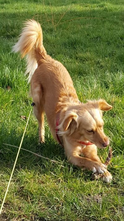 Emmy ist ein gehorsamer Hund, die gerne lernt und Tricks kann. Sie fährt gern mit im Auto mit, ist durchgeimpft und kastriert.