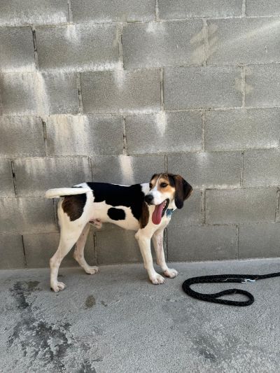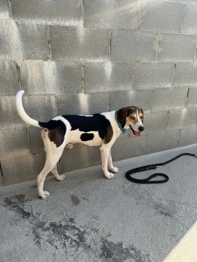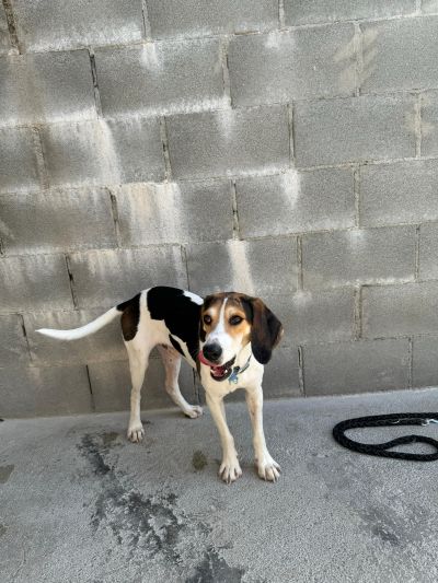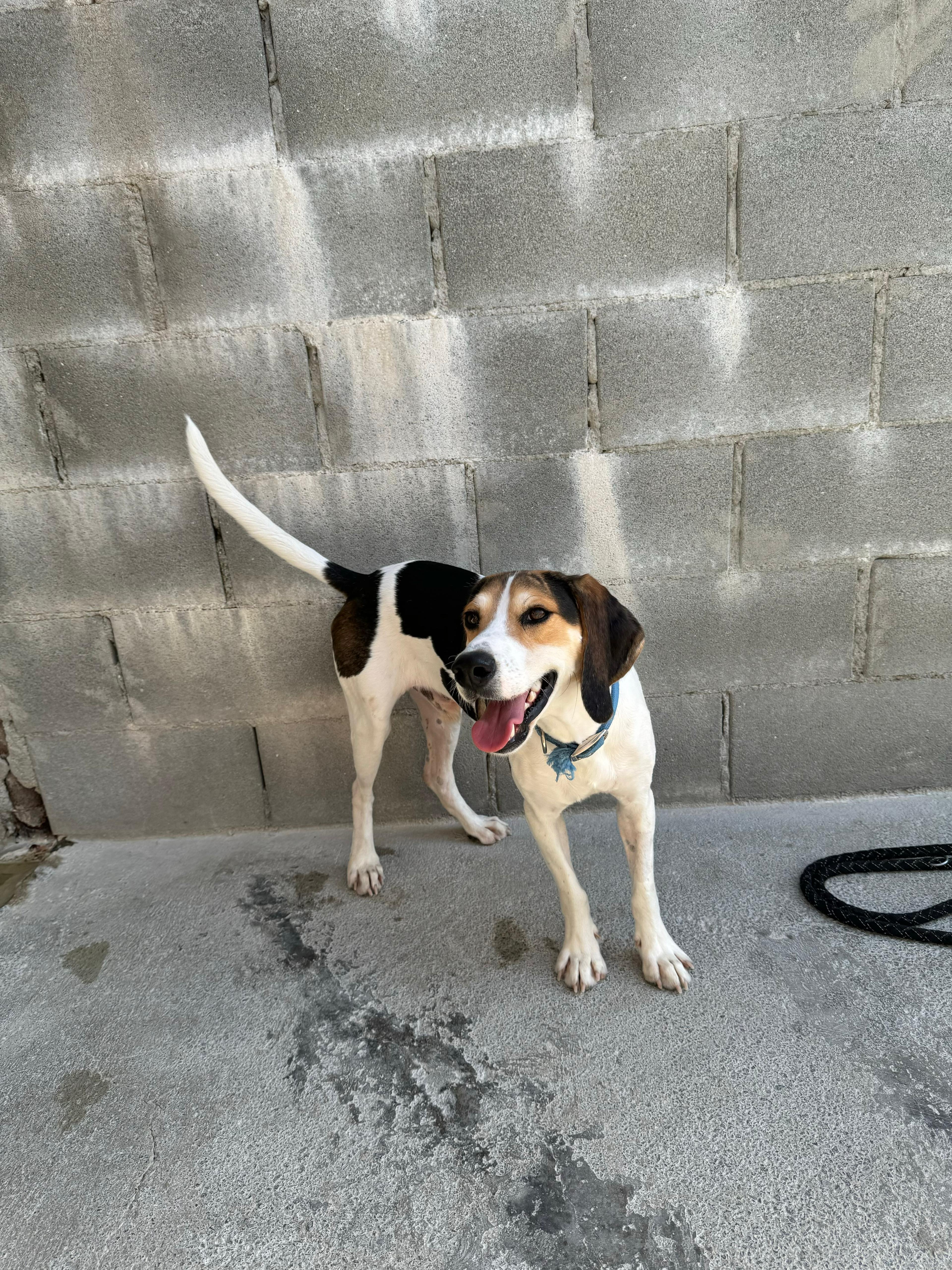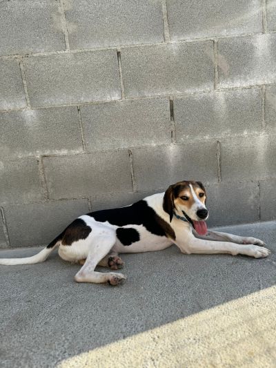 Der charmante Figo ist ein etwa einjähriger Cross Pointer mit einem wunderschönen, dreifarbigen Fell. Er hat eine sehr tolle Fellzeichnung - strahlend weiß mit markanten schwarzen Flecken und einem braunen Kopf. Figo wurde vor vier Wochen von einer aufmerksamen Dame in Paphos ins Shelter gebracht, nachdem sie ihn gefüttert und gepflegt hatte. Er hat sich schnell eingelebt und zeigt sich als gut erzogener und freundlicher Rüde.