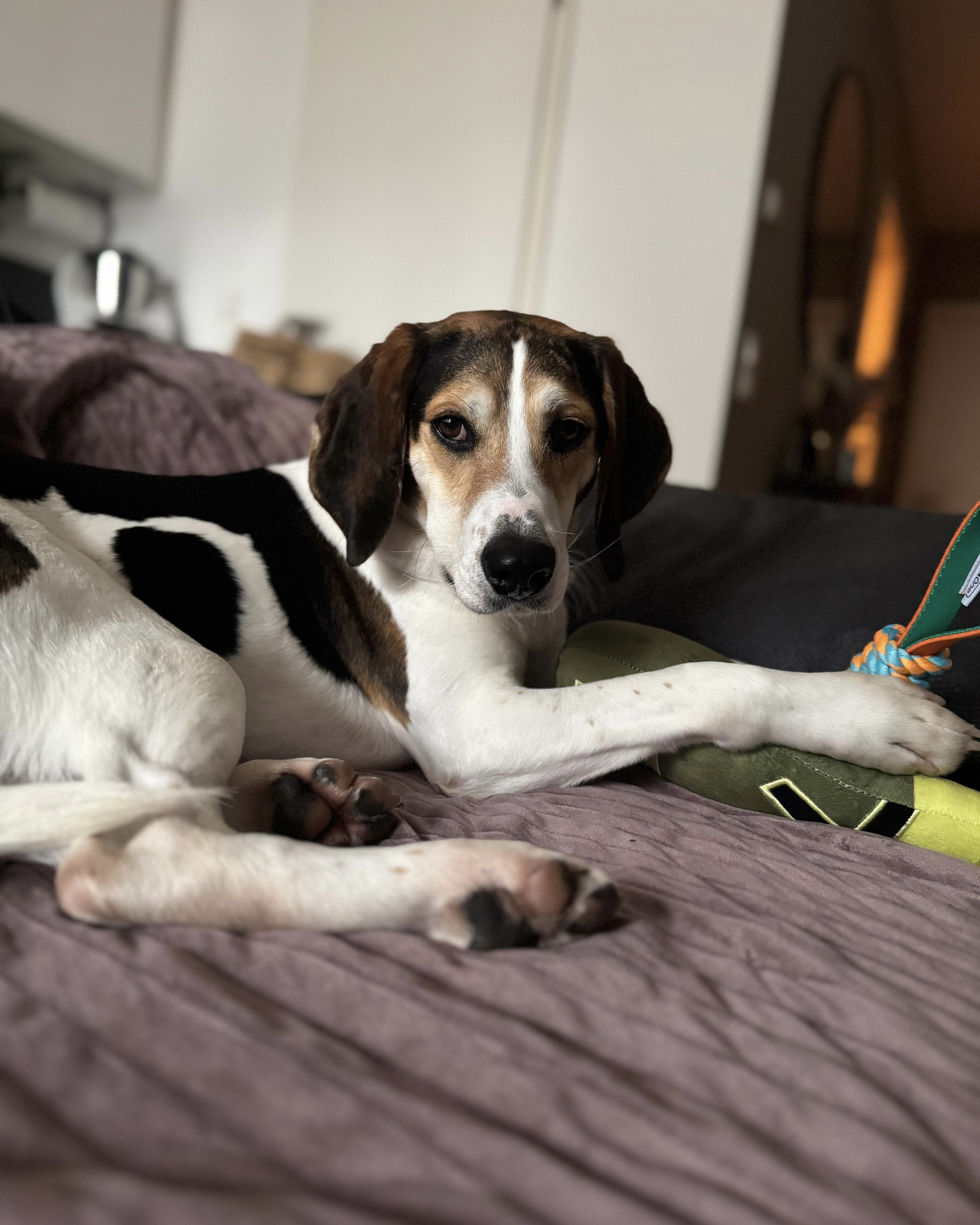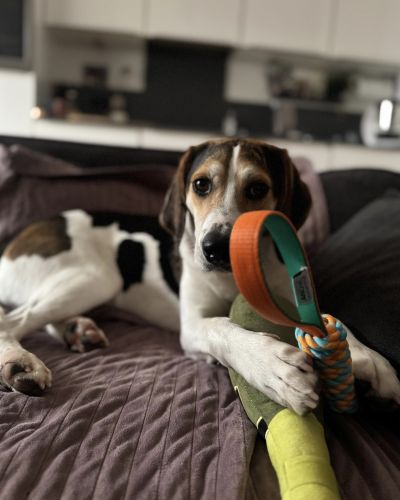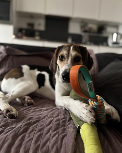 Figo ist am 25.01. bei seiner tollen Pflegestelle in Frankfurt angekommen. Er zeigt sich dort als absolut vorbildlicher und entspannter Hund - genau so wie wir ihn bereits im Shelter kennengelernt & eingeschätzt haben. Er ist absolut stubenrein und kommt in unterschiedlichen Umgebungen bereits alleine und schnell zur Ruhe. Er zeigt sogar bereits an, wenn er raus muss. Auch draußen geht er schon entspannt an der Leine und erkundet seine neue Umgebung. Hierbei orientiert er sich schon total an seiner Pflegestelle und schaut immer, dass sie noch da ist. Andere Hunde beim Spazierengehen werden vorbildlich kennengelernt und er hat bereits großen Gefallen dran gefunden, mit anderen Hunden oder Stöckchen zu spielen.