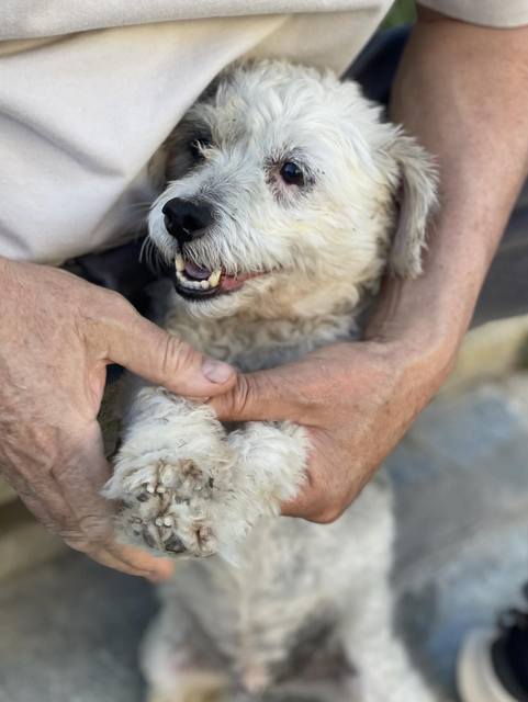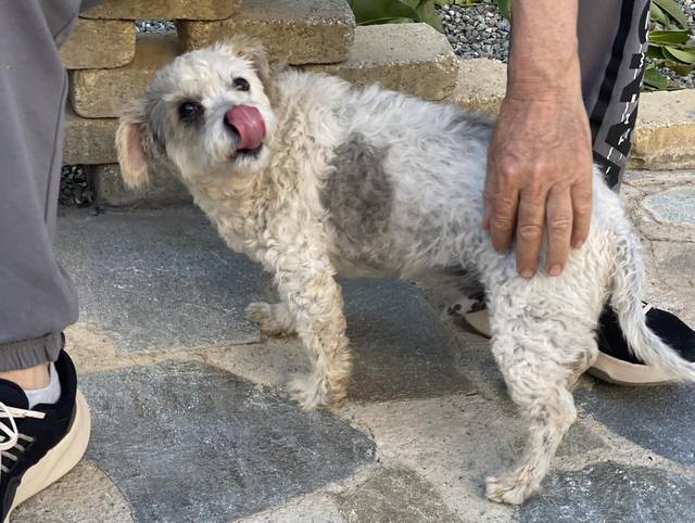 Ihm ging es nicht so gut. Fussel hat ein Zuhause gehabt und wurde dann ausgesetzt und sich selbst überlassen.