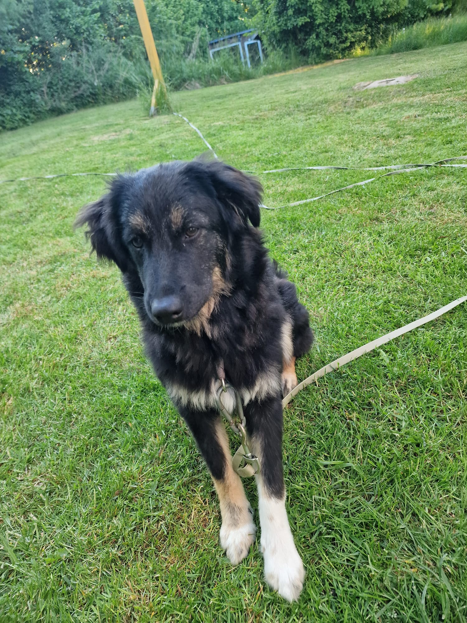 schönen, weichen, schwarzen Fell entwickelt, was sicherlich noch länger wird. Sowohl sein Aussehen als auch sein Verhalten entsprechen immer mehr einem