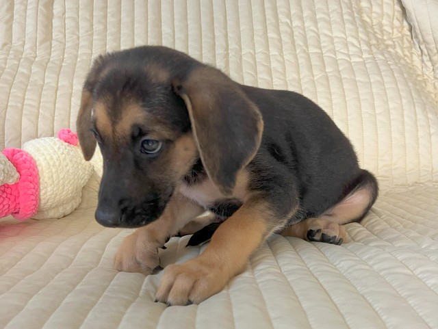 Ian ist ein sehr süßer und verspielter Welpe, er hat keine Scheu vor Menschen und möchte gerne Kontakt und auch gekrault werden.