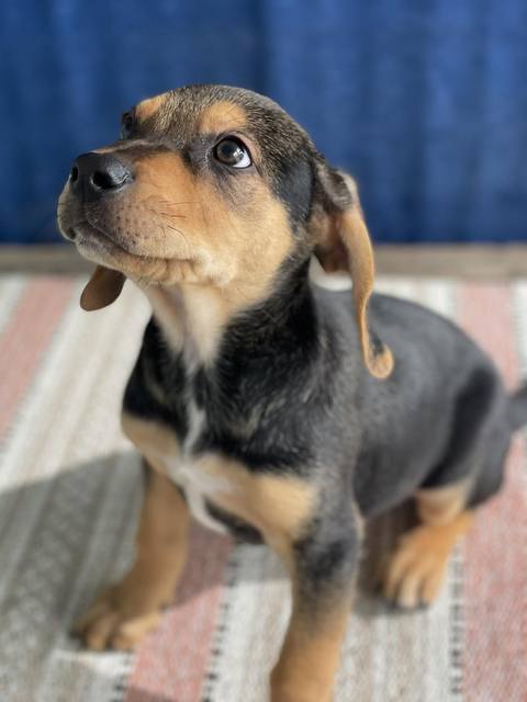 Idefix ist so ein netter kleiner Welpe, ein bisschen ein Mama-Söhnchen, er weint und beschwert sich gerne über sein Leben. Idefix ist verspielt, mag es mit Menschen zusammen zu sein, einfach ein toller kleiner Hund, der einmal mittelgroß bis groß sein wird.